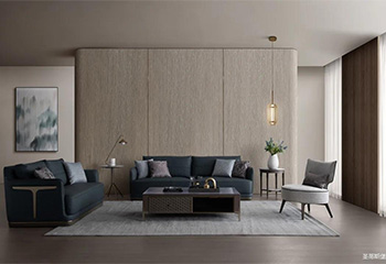 疏朗大气的客厅空间,整体采用低明度的木纹色,在保留实木质感同时,也为空间增添了一缕木香。沙发线条利落干净,深邃而浪漫的配色仿佛将居者带进了海洋世界。艺术编制皮料搭配金属底座,时尚大气质感扑面而来,将理性和感性完美结合,提高了居家的时尚格调。